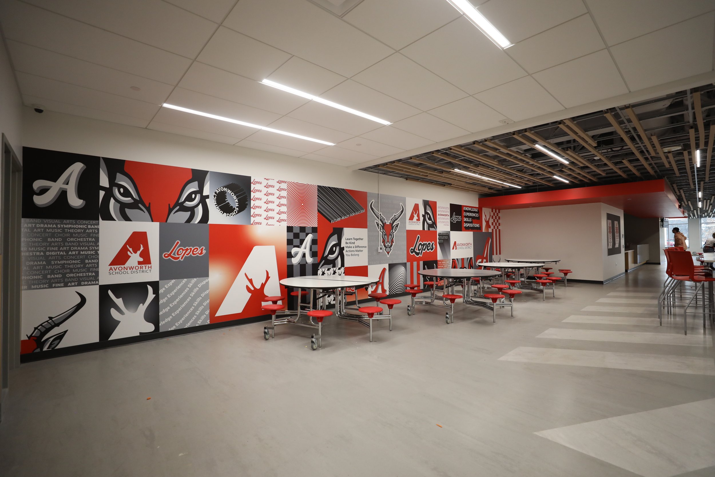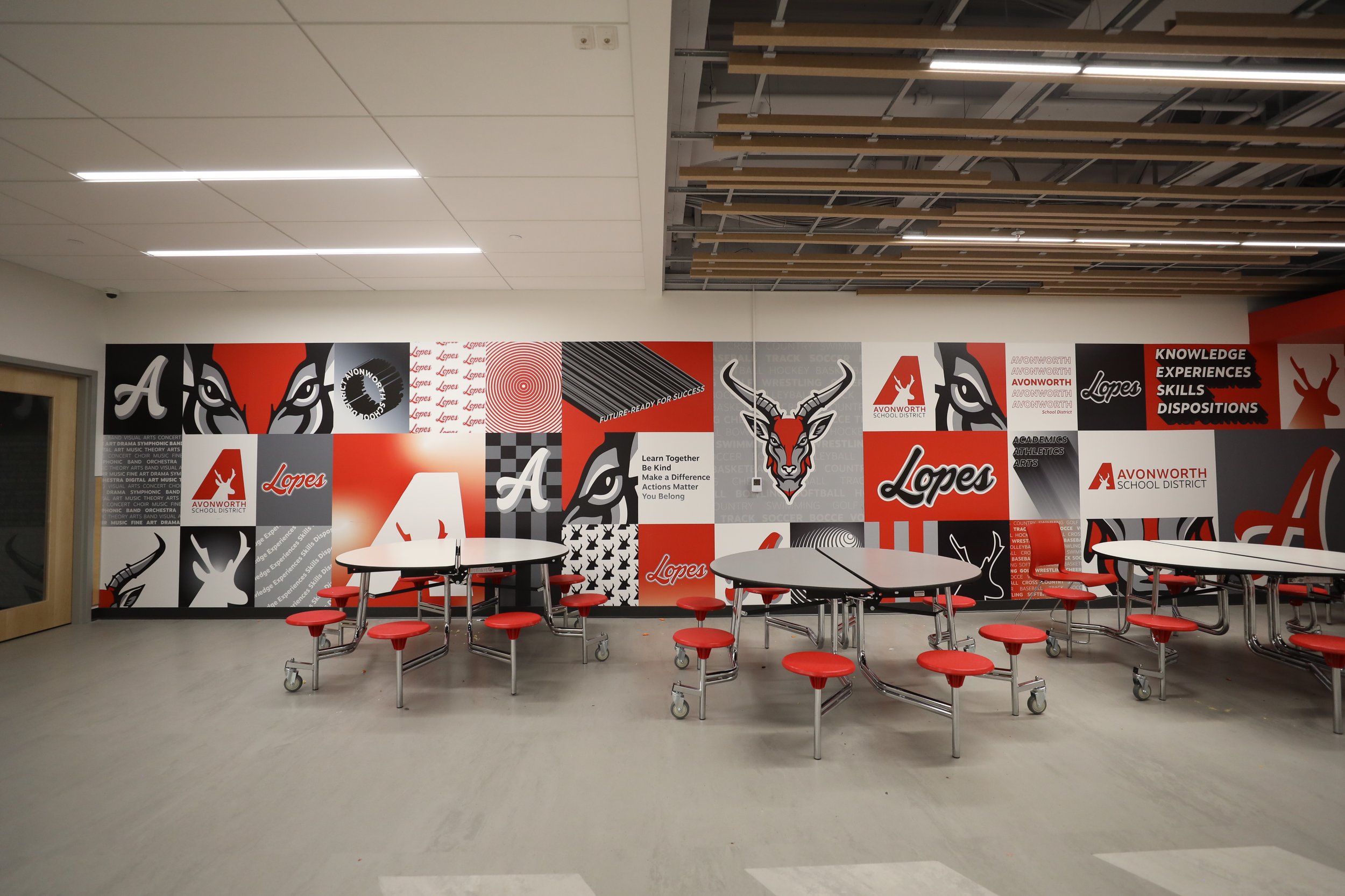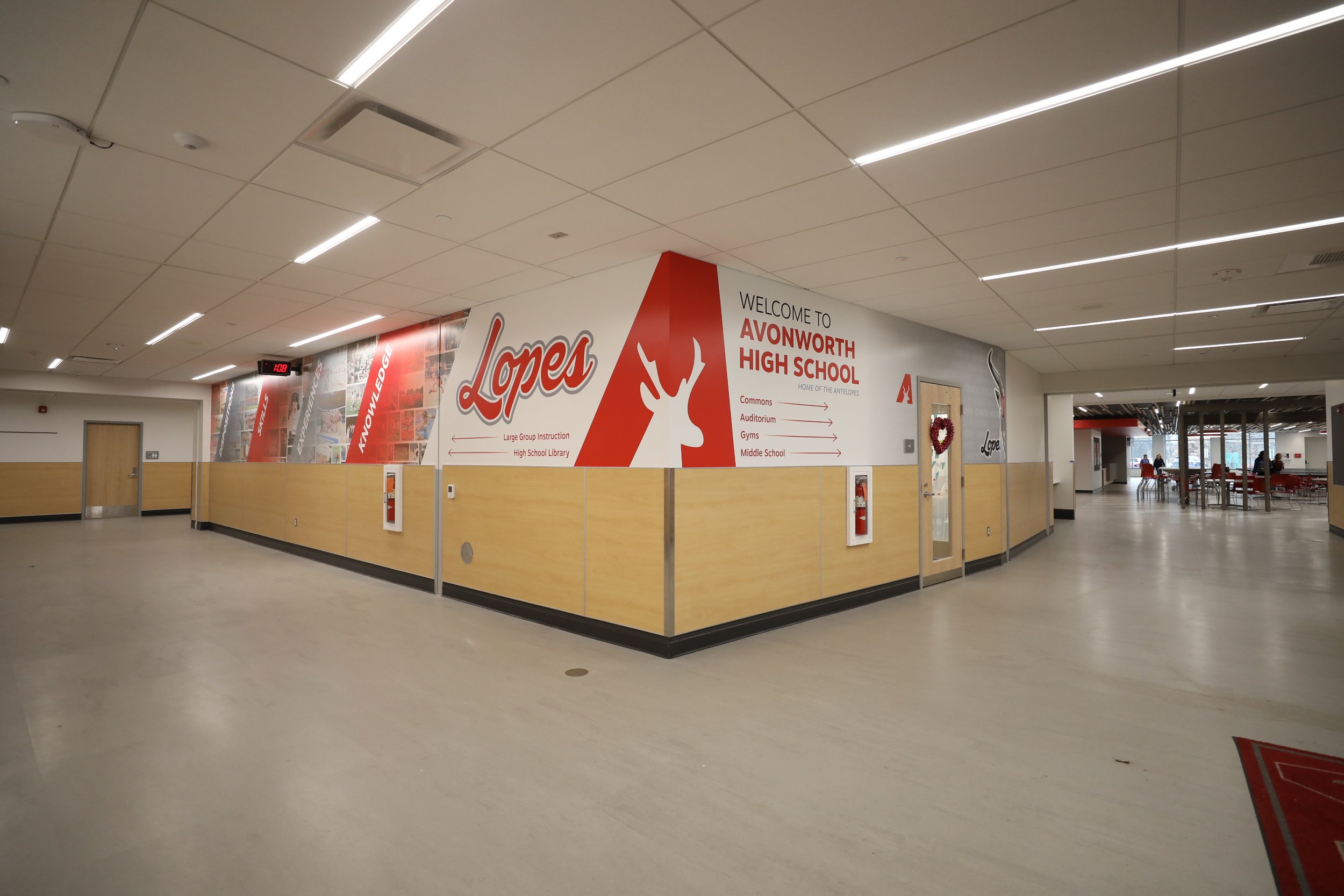 Avonworth School District partnered with IKM Architecture to renovate and expand their newly combined middle and high school campus.As part of the project, they wanted to incorporate their new branding into the hallways to enhance wayfinding, showcase artwork, and celebrate school pride within the refreshed space.