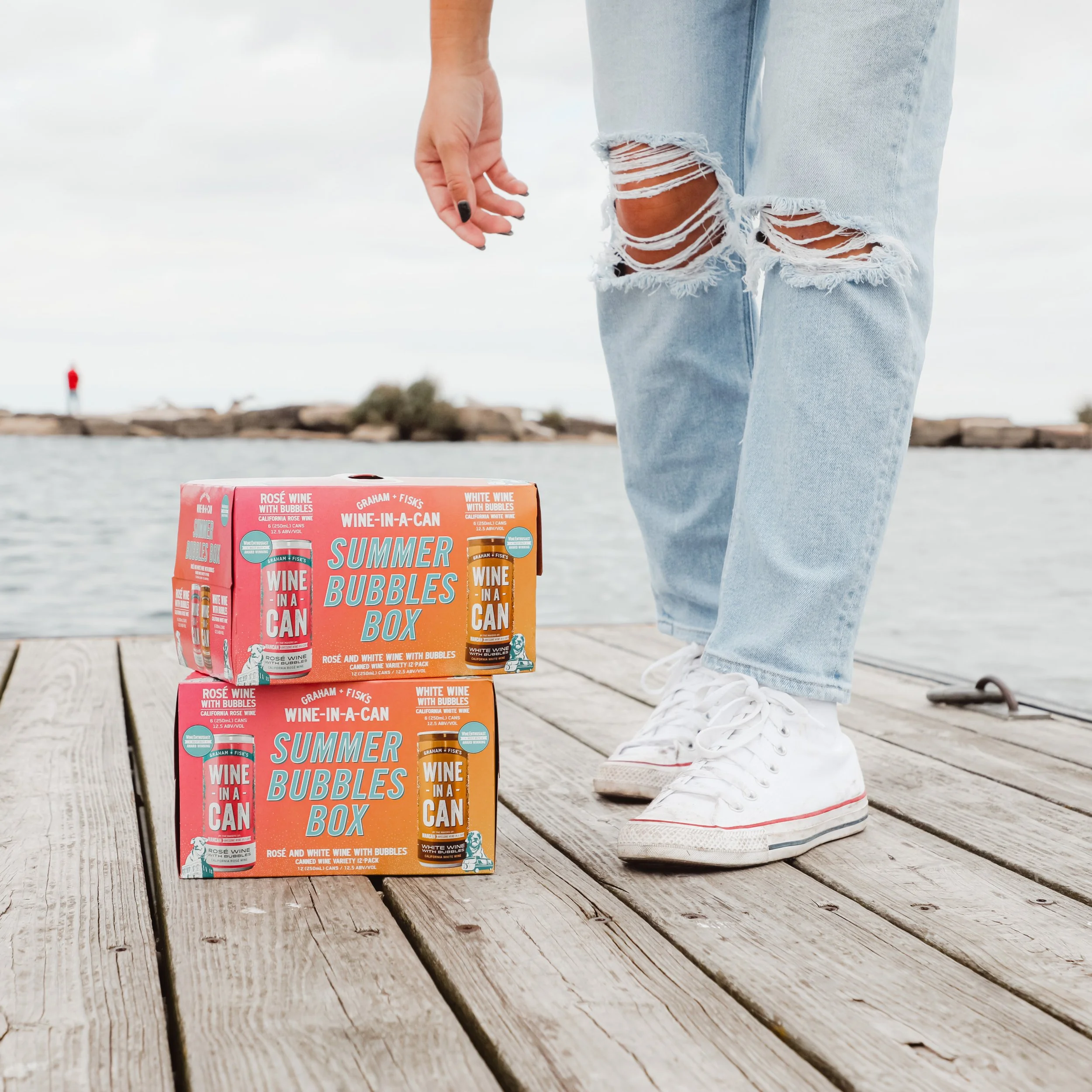 To kick off the summer season, I developed the Summer Bubbles 12-Pack featuring two bubbly varietals, Rosé and White. The goal was to evoke sunshine, fun, and portability, reflecting the grab-and-go nature of canned wine.