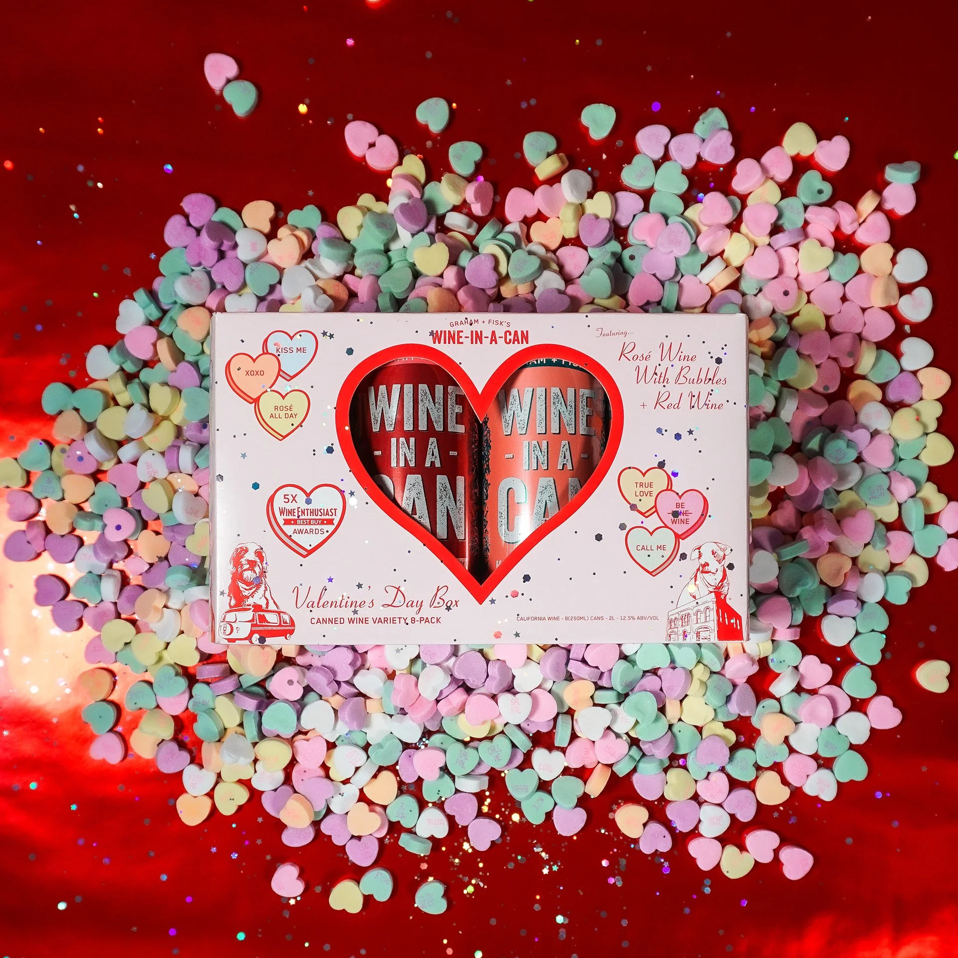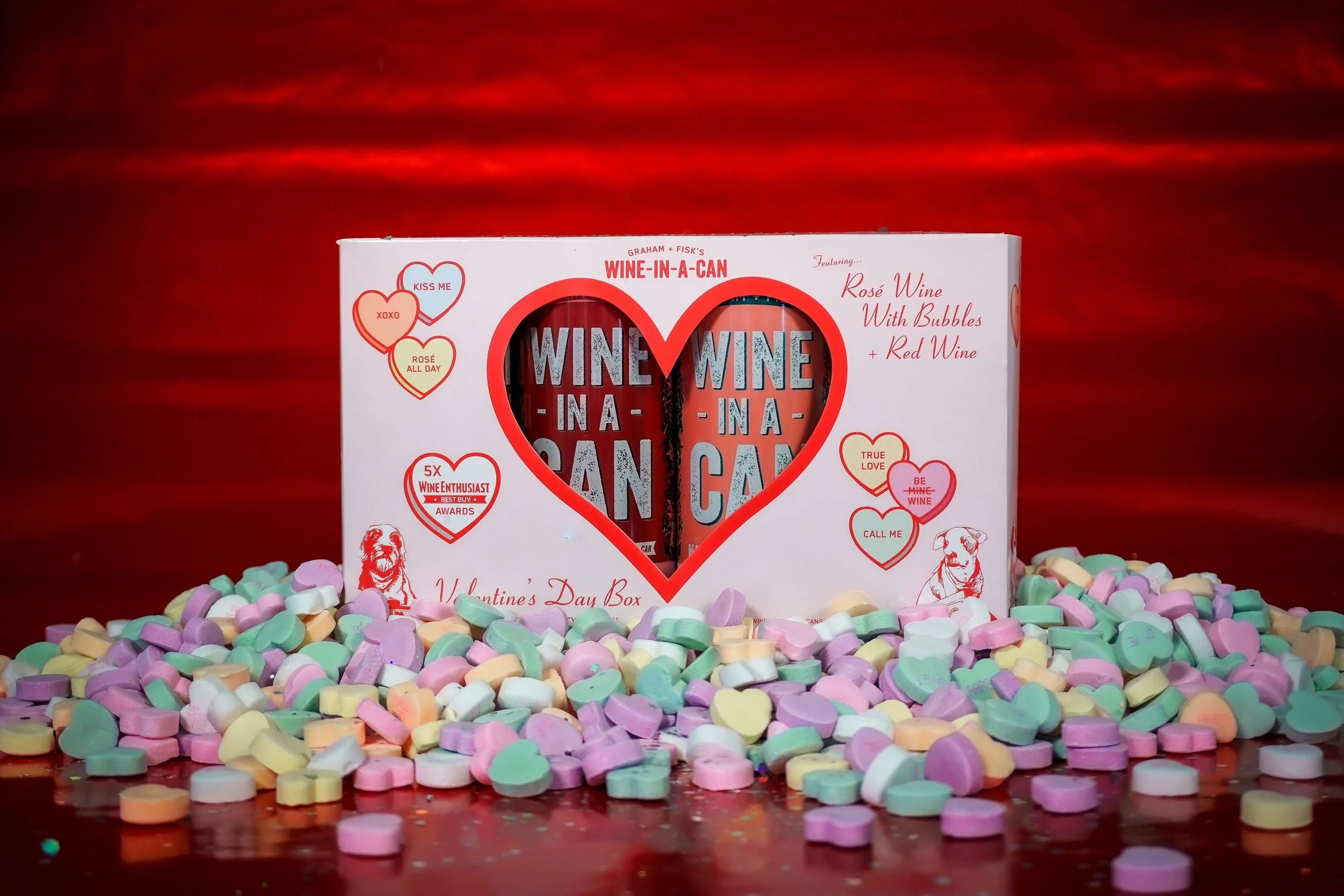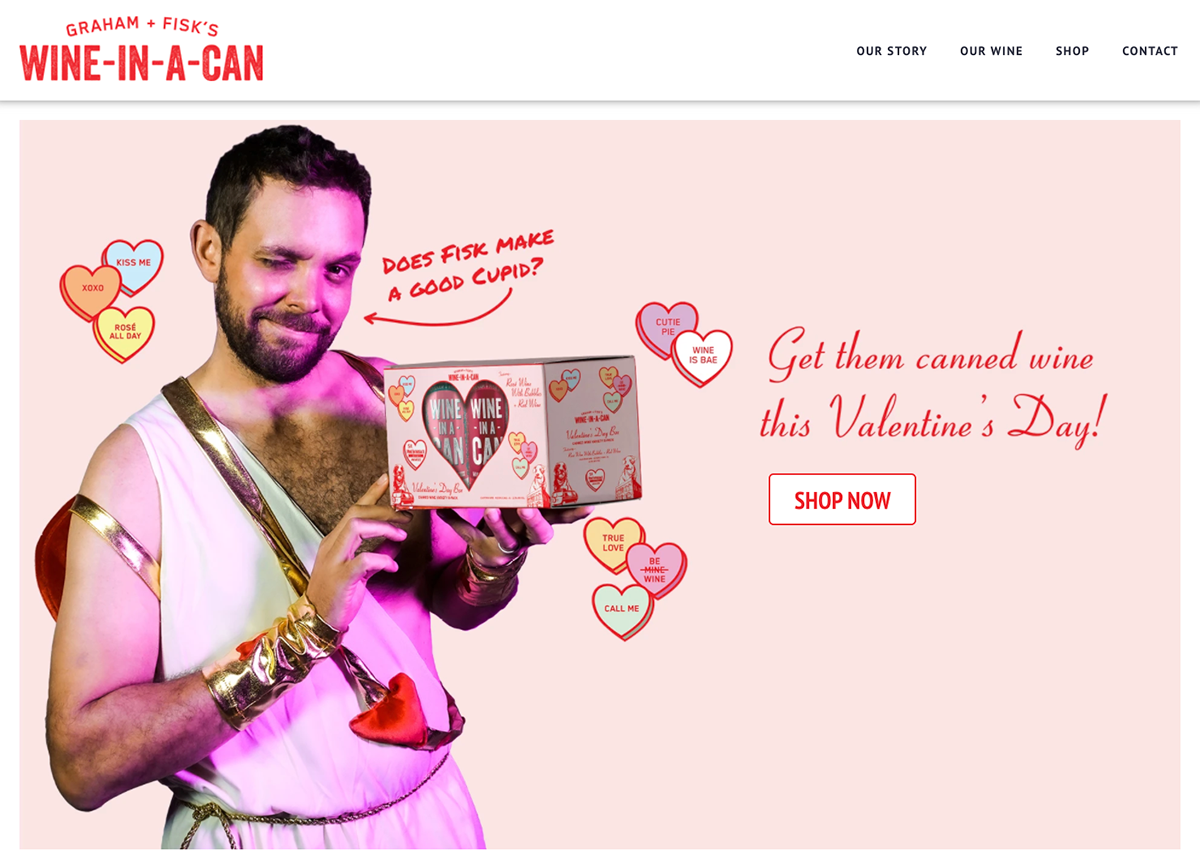 “Wine-themed” candy heart illustrations with cheeky messages added personality and shareability.